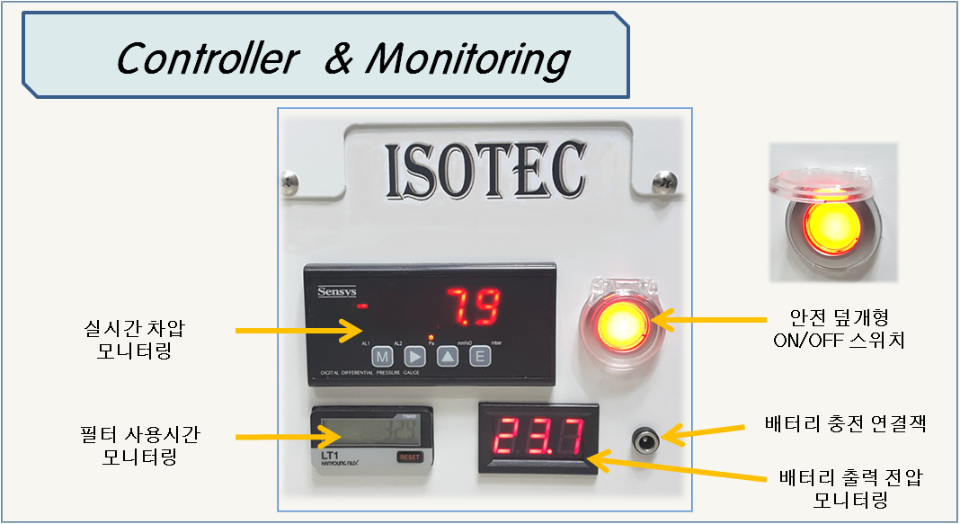 -장비 내부에는 HEPA Filter 을 통한 음합이 형성이 되어 있어서 감염성 물질 확산을 방지 하는 제품입니다.